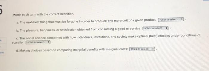 The things that must be forgone to acquire a good are called. Economics Opportunity cost Marginal analysis Utility. The pleasure happiness or.